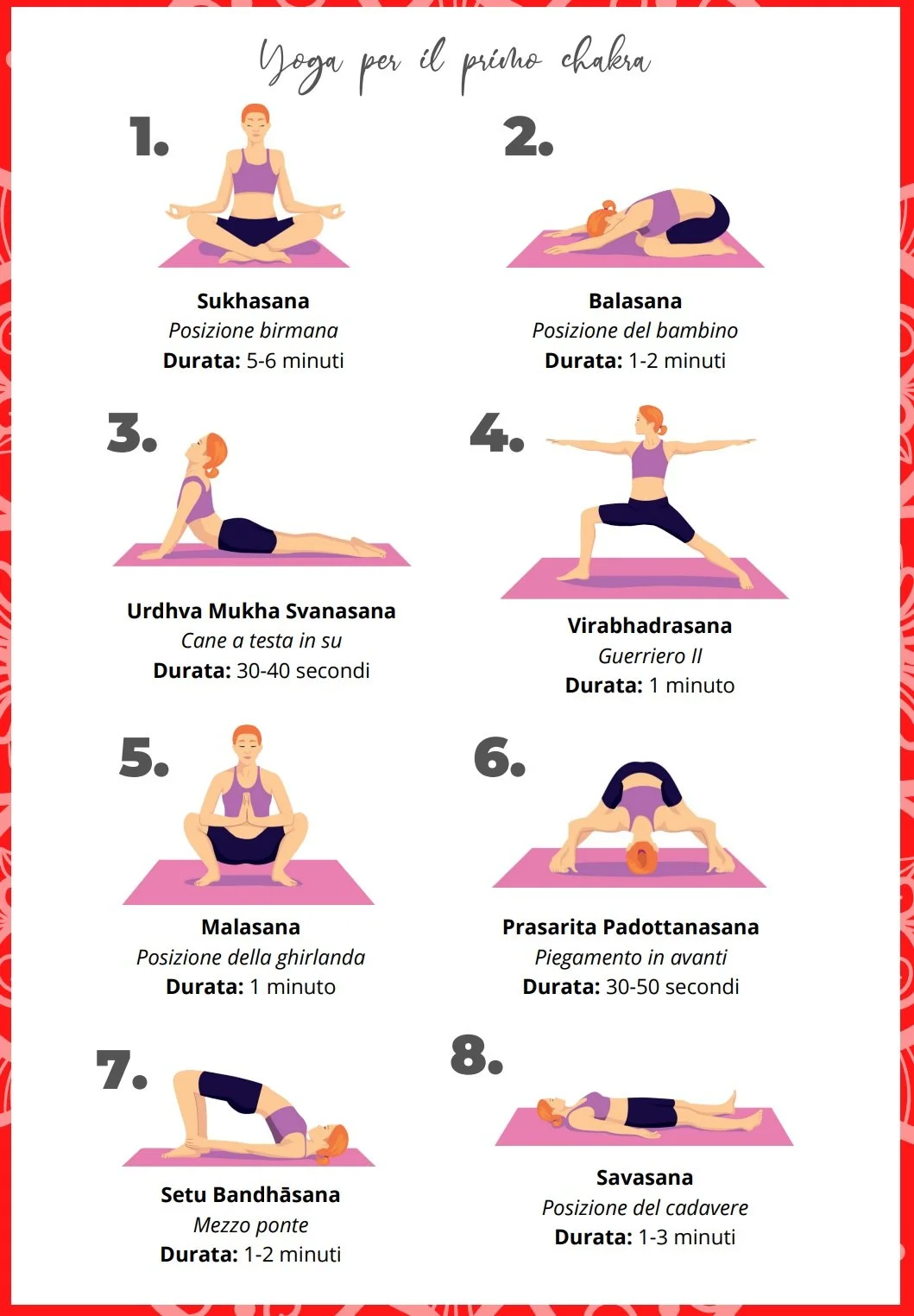 Lo yoga è un ottimo strumento per attivare il primo chakra. Ecco alcune posizioni efficaci che si possono eseguire in sequenza.
